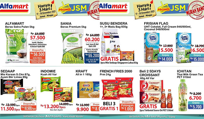 Promo JSM Alfamart pekan ini berlangsung 3 hari, yaitu 17-19 Desember 2021.