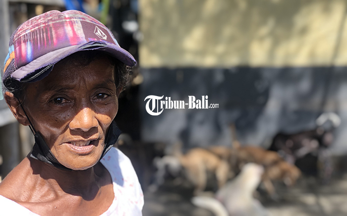 TRIBUN-BALI.COM, DENPASAR - Berawal dari tak kuasa melihat seekor anjing yang akan dijadikan makanan dan dipukuli oleh oknum yang tak bertanggung jawab, Sumiati, wanita senja usia 60 tahun ini kini merawat seluruh anjing yang telantar di kawasan Pantai Padang Galak, Denpasar, Bali.