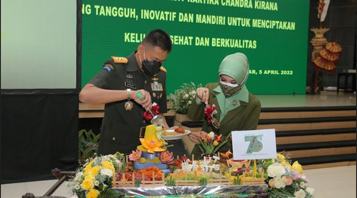Para Ibu-ibu istri tentara ini memperingati dengan syukuran di Aula Udayana Makodam IX/Udayana, Denpasar, pada Selasa 5 April 2022.
