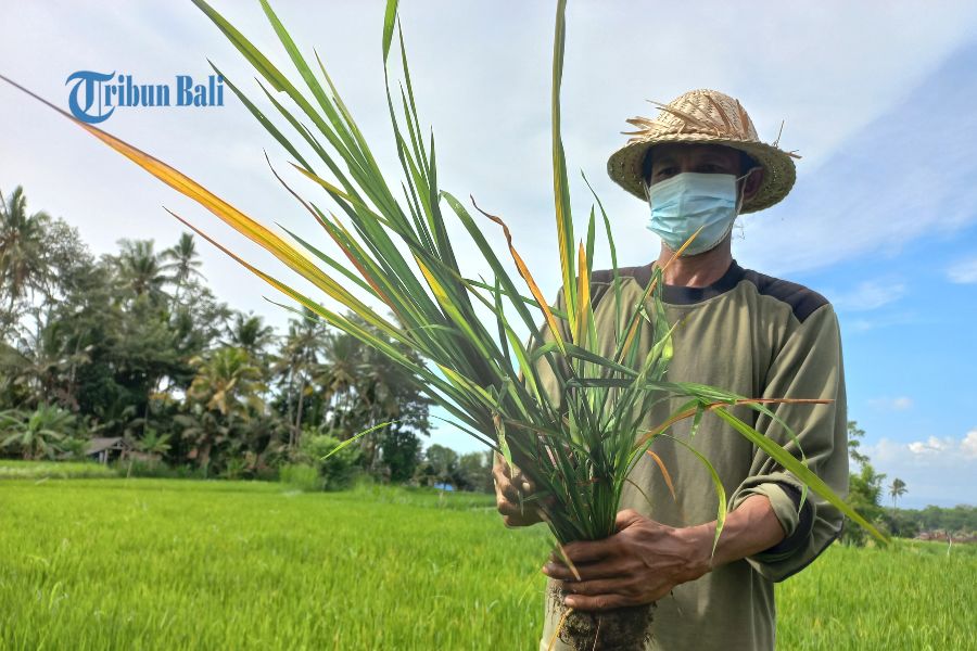 " Ini terkena tungro, batang sampai daunnya menguning. Ini yang kena masih sedikit, harus segera dicegah. Kalau dibiarkan bisa meluas," ujar Putu Yasa, Senin (13/6).