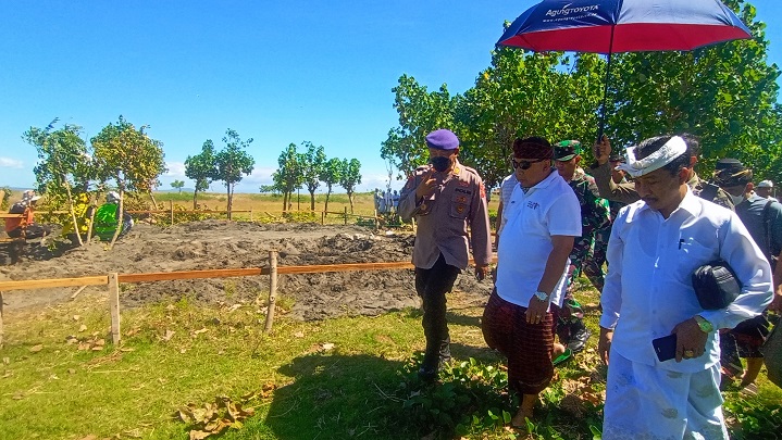 NEGARA, TRIBUN BALI - Bupati Jembrana, I Nengah Tamba meletakan batu pertama pembangunan Sirkuit All In One Pengambengan, Jembrana, Jumat 8 Juli 2022.