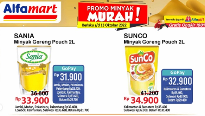 TRIBUN-BALI.COM, DENPASAR - TERAKHIR, Promo Alfamart 13 Oktober 2022, Aneka Minyak Goreng Turun: Bimoli Sania Sunco Fortune