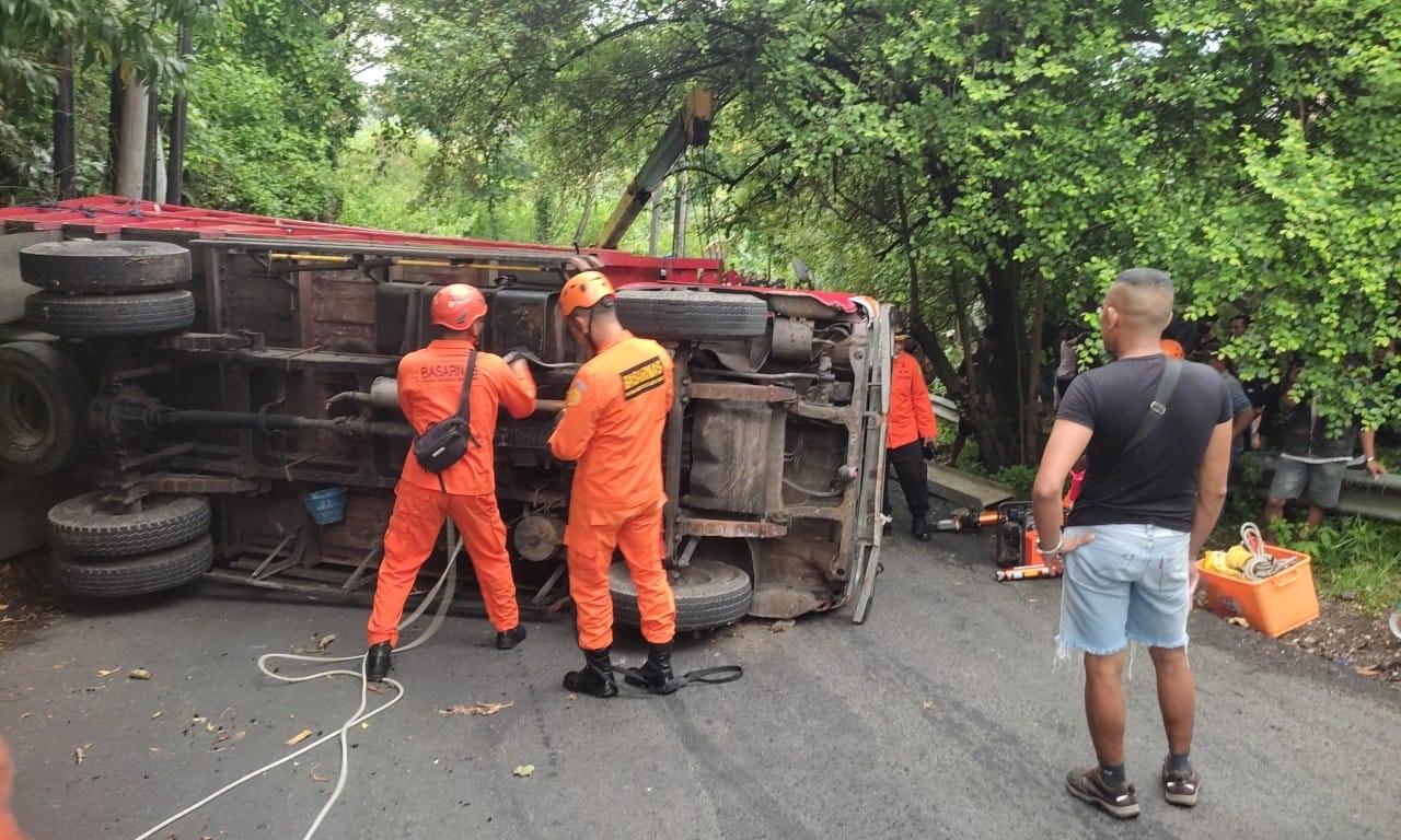 KECELAKAAN! Truk Terguling di Tanjakan Goa Gong Jimbaran Badung Bali, 1 Orang Meninggal Dunia