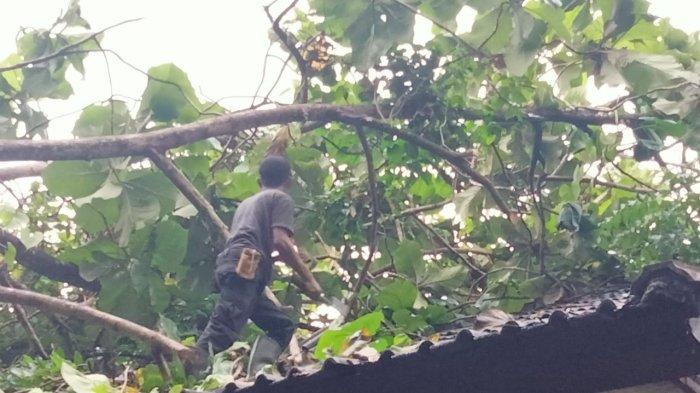 Di hari yang sama, pohon kelapa juga menimpa atap rumah warga di Desa Tegalinggah, Kecamatan Karangasem.