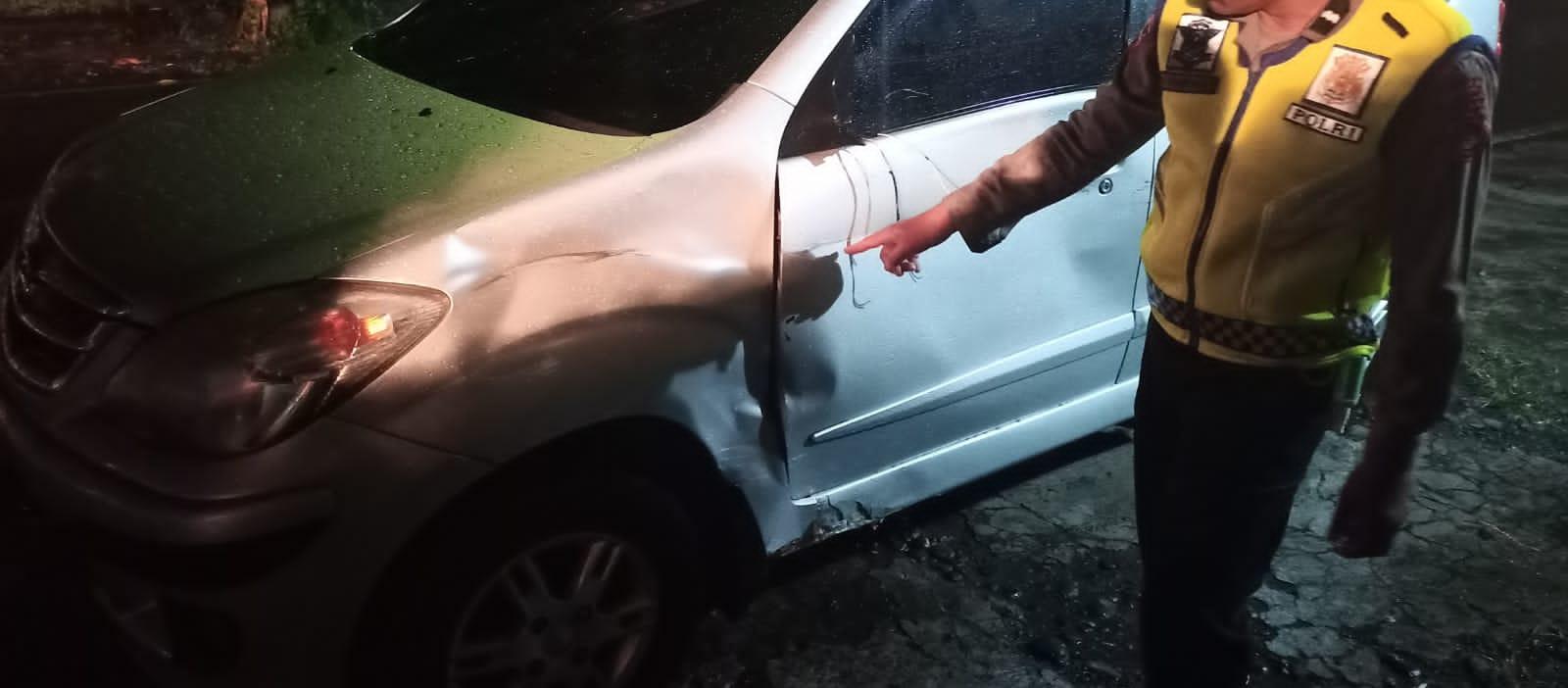 Seperti pada pintu bagian kiri mobil yang dihantam sepeda motor.