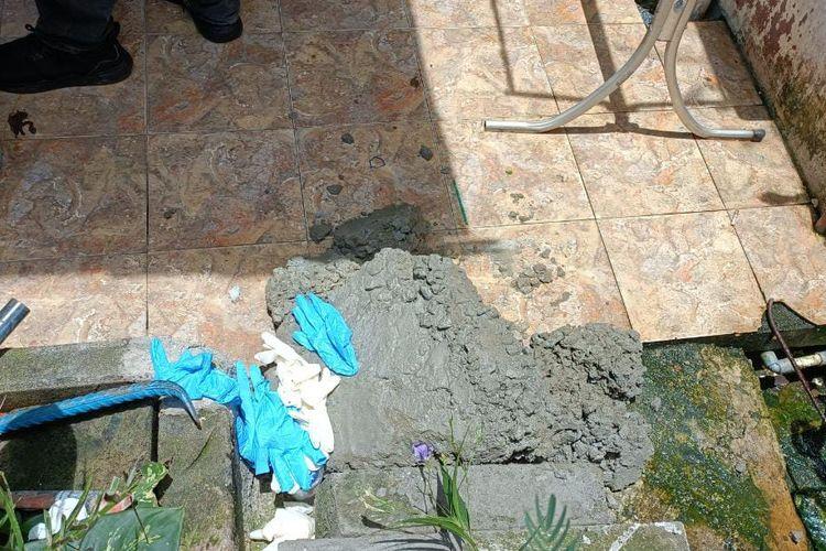 Mayat dua wanita berusia 48 dan 47 tahun ditemukan dicor di bawah tangga sebuah rumah kontrakan berpagar cokelat.