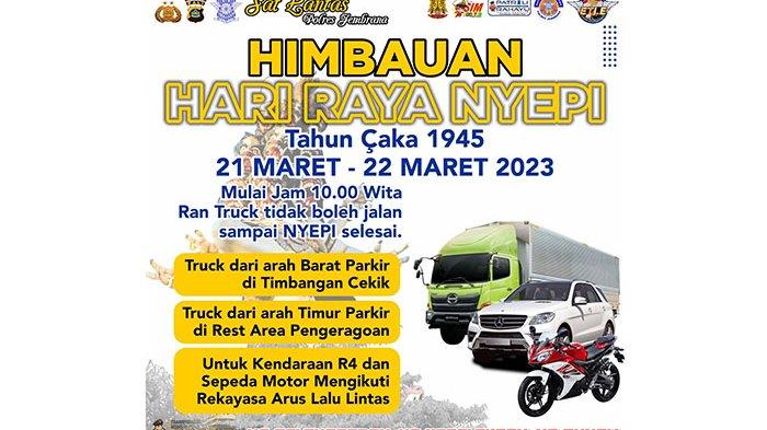 Mulai pukul 10.00 WITA, Selasa 21 Maret 2023 kendaraan truk tidak boleh melintas hingga perayaan Hari Suci Nyepi berakhir.