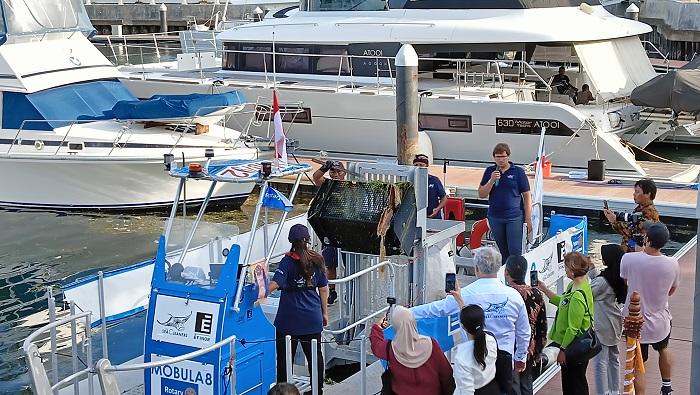 Peresmian operasi ditandai gunting pita lalu dilanjutkan dengan uji coba kapal Mobula 8 yang dapat secara otomatis menyaring sampah-sampah terapung.