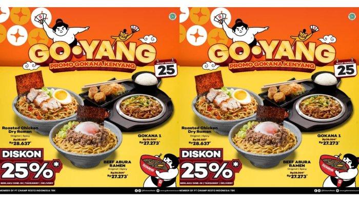 Nikmati diskon 25 persen untuk menu favoritmu: Roasted Chicken Dry Ramen / Gokana 1 / Beef Abura Ramen, khusus di tanggal 25 Maret 2023.