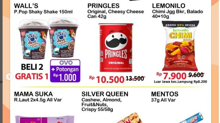 Es krim Walls paddle pop shaky shake ada promo beli 2 gratis 1 loh. Kemudian ada Lemonilo chimi jagung bakar/balado seharga Rp7.900 aja.