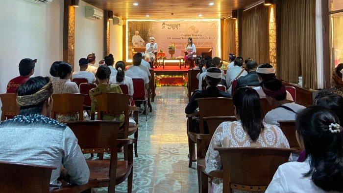Acara Dharma Wacana tersebut diisi langsung oleh, Dr. Komang Indra Wirawan, selaku Pembicara Dharma Wacana mengatakan tema Dharma Wacana yang akan dibawakan yakni meningkatkan kualitas diri dalam moderasi beragama dalam tatanan ajaran spiritual Agama Hindu.
