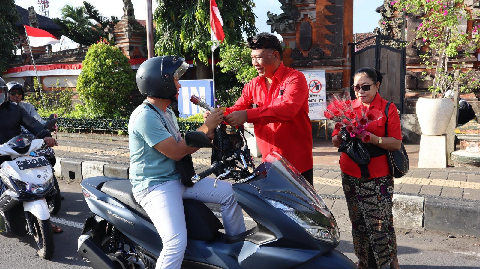 Mulai dari membagikan 1.000 nasi bungkus ke masyarakat, bagi-bagi 1.000 bunga mawar, serta bagi-bagi stiker Ganjar Pranowo di seputaran Catus Pata Semarapura.