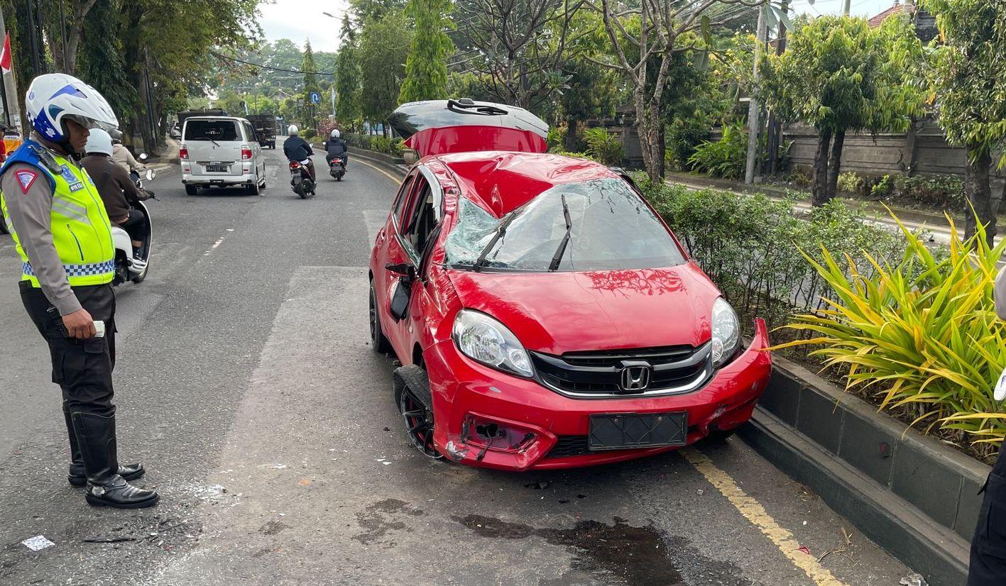 Hanya saja kerusakan mobil tersebut cukup parah dan median jalan juga mengalami kerusakan.