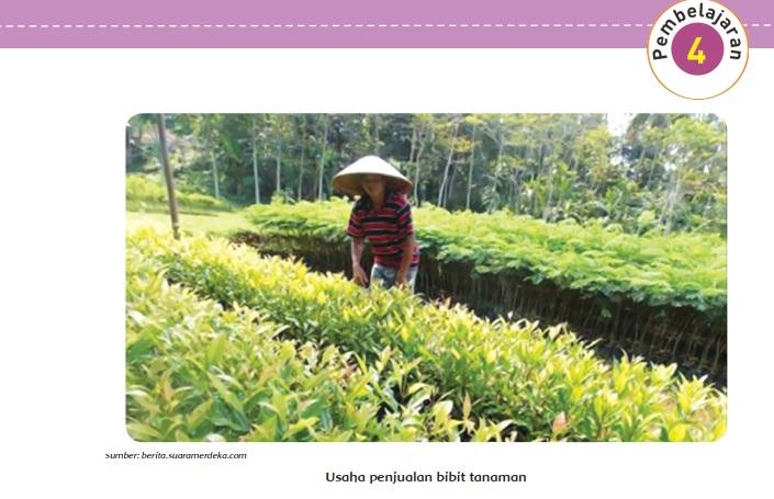 Perhatikan gambar di atas. Menurutmu, apa jenis usaha yang ditunjukkan gambar tersebut? Ya, ini adalah usaha penjualan bibit tanaman.