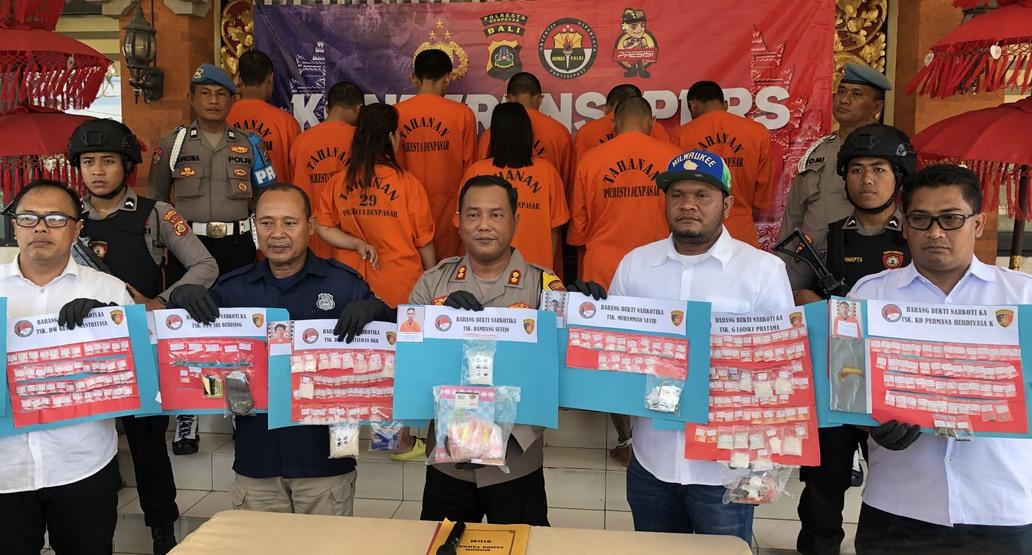 Satresnarkoba Polresta Denpasar dalam pengungkapan puluhan kasus itu berhasil menyita beragam barang bukti. Mulai dari sabu-sabu, ganja, ekstasi, dan tembakau sintetis.