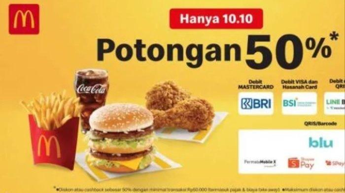 Promo 10.10 McD potongan 50 persen khusus edisi 10 Oktober 2023 ini berlaku untuk berbagai jenis pembayaran, seperti: