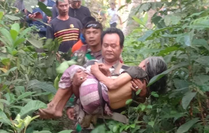 Tak butuh waktu lama, korban ditemukan dalam kondisi selamat di semak-semak.