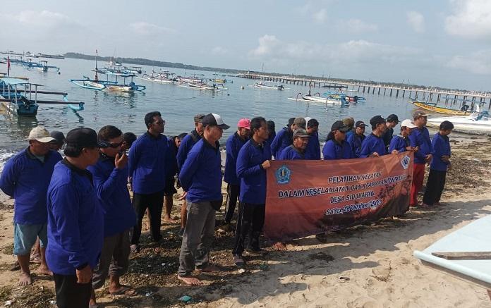 Para nelayan ini mendapatkan Pelatihan Keselamatan dan Keamanan di Laut oleh Badan SAR Nasional (BASARNAS) Bali.