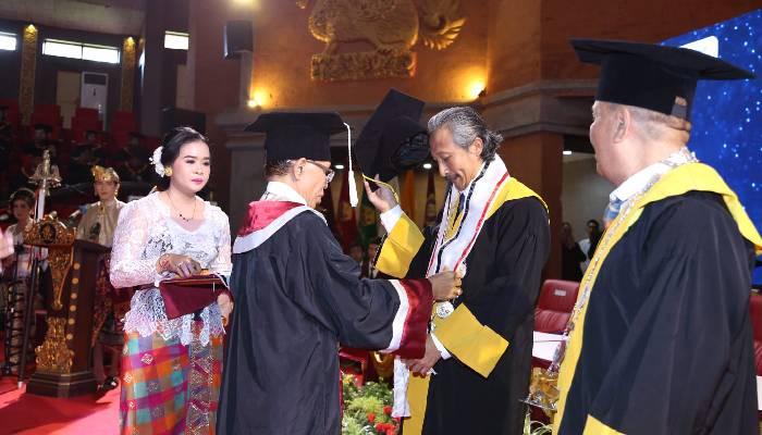 Kedua guru besar itu adalah Prof. Dr. Gede Suwindia, S.Ag, M.A bidang Ilmu Agama dan Lintas Budaya yang merupakan lulusan S3 Universitas Gadjah Mada tahun 2013 silam.