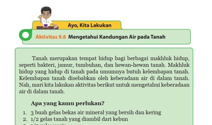 Di bawah ini soal IPA Kelas 9 Semester 2 halaman 181 182, Kunci Jawaban kegiatan siswa Aktivitas 9.6: Kandungan Air dalam Tanah