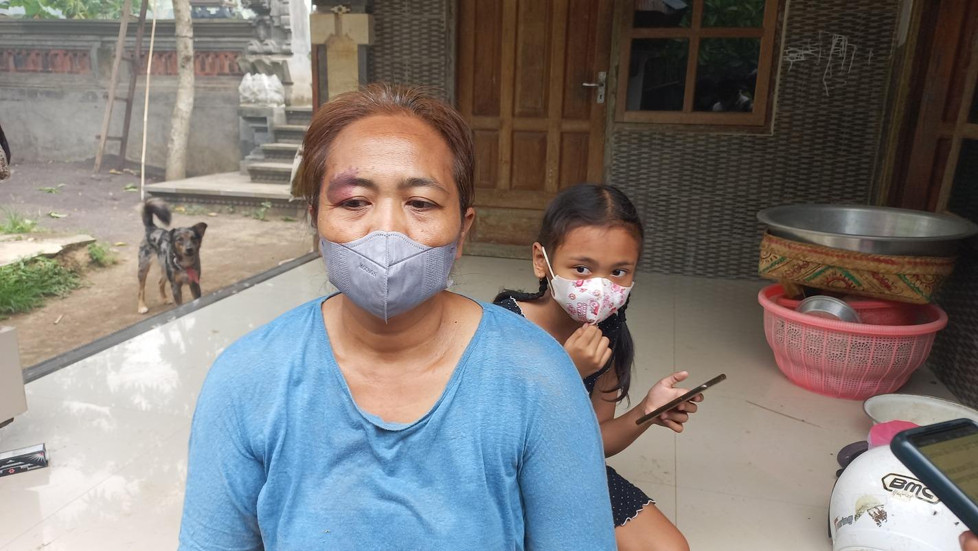 SEMARAPURA,TRIBUN-BALI.COM - Ni Wayan Kardiani (45), warga di Banjar Pasekan, Desa Dawan Kaler meminta putrinya yang masih anak-anak untuk bergegas memakai masker, Selasa (23/1/2024).