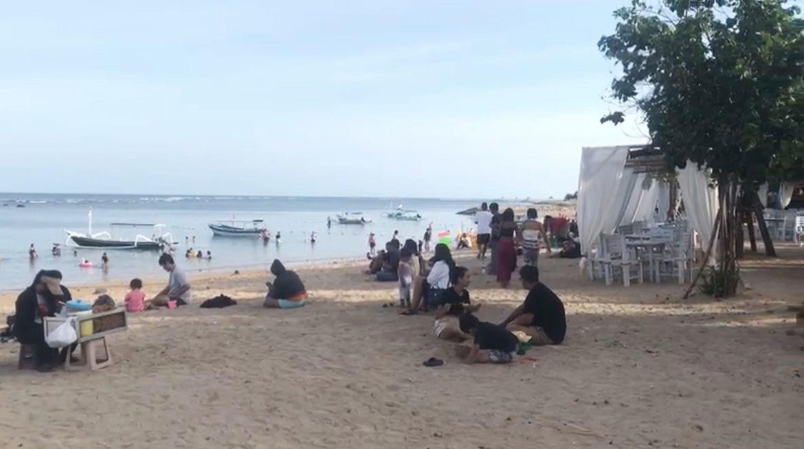 Suasana Pantai Bangsal Sanur Saat Ngembak Geni, Ada yang Berjemur Hingga Berenang