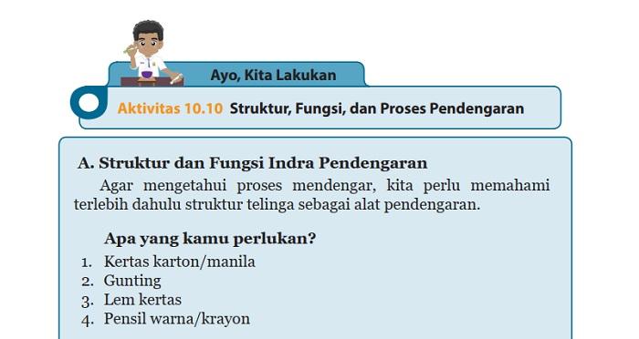 Ayo kita belajar IPA! Simak nih, inilah kunci jawaban IPA Kelas 8 Semester 2 halaman 141 142, soal Aktivitas 10.10: Proses Pendengaran