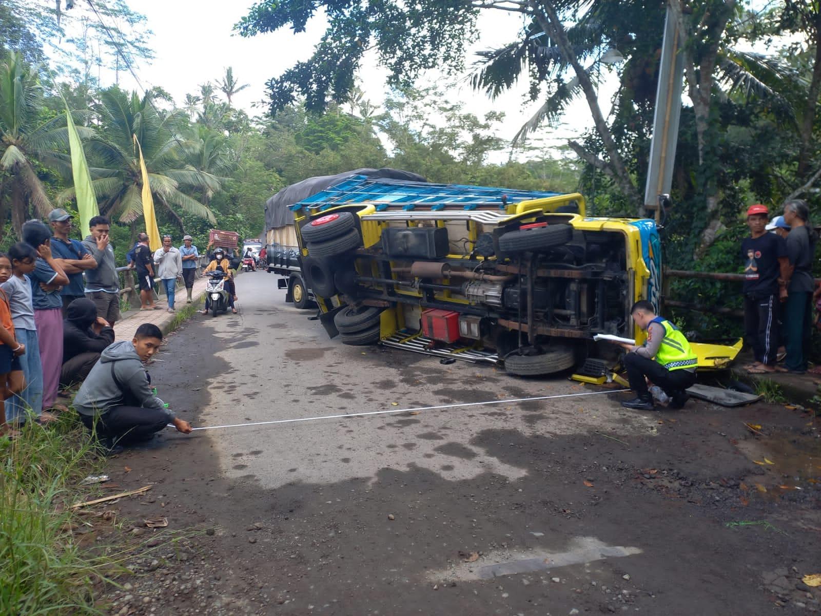 "Truk mundur dan menabrak truk putih yang dikemudikan Ida Bagus Susilo. Korban meninggal dunia akibat tertimpa badan truk. Sedangkan supir, kondisinya tidak mengalami luka-luka," kata Ipda Karya.