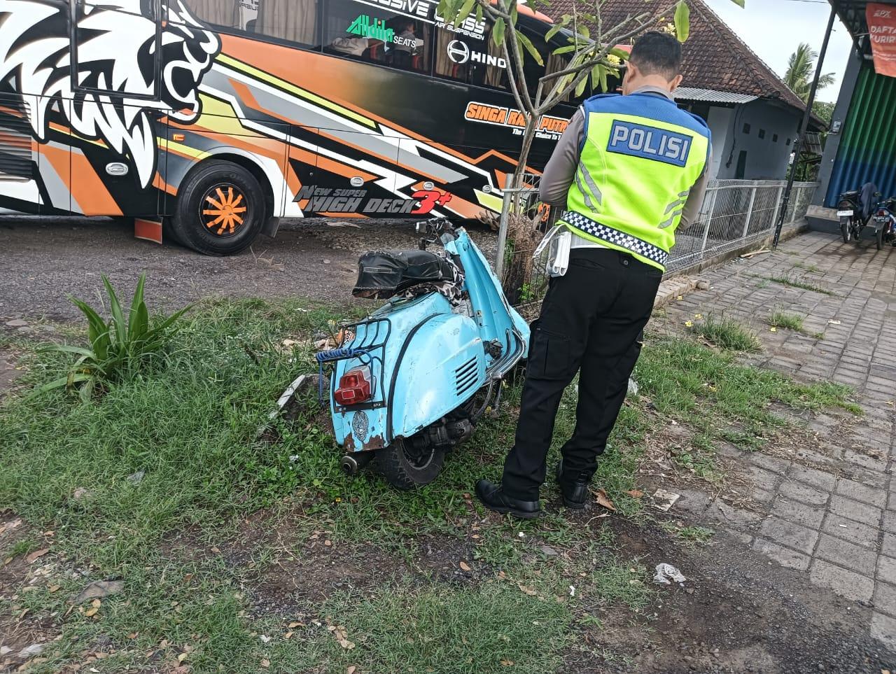 Akibat kejadian tersebut, pengendara Vespa warna biru muda tersebut tidak sadarkan diri, menderita luka robek pada lutut kanan dan kiri serta luka robek pada kepala kepala belakang.