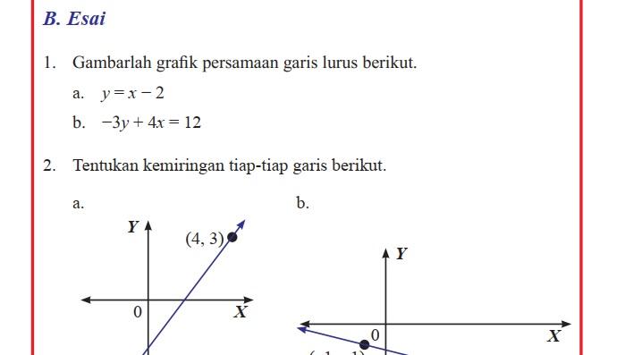 Kali ini kita akan membahas soal pada bab ke 4 yang berjudul Persamaan Garis Lurus pada kegiatan siswa Uji Kompetensi Bab 4 tentang soal Esai.