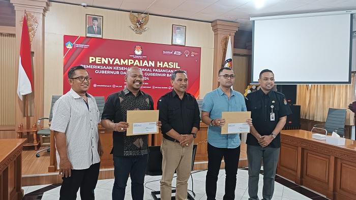 Penyerahan hasil cek kesehatan ini diserahkan pada Rabu, 4 September 2024 sore dari KPU Bali kepada LO kedua paslon.
