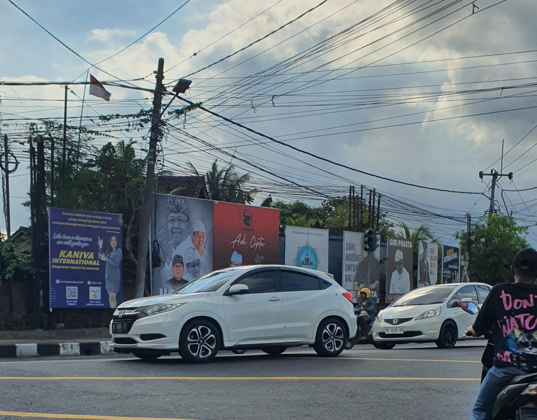 Termasuk juga Baliho ucapan selamat hari raya Galungan dan Kuningan yang memadati ruas jalan ptotokol di Gumi Keris.
