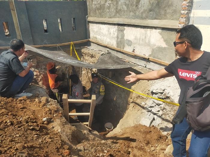"Saat penggalian itu, sekitar satu meter di bawah dari bangunan yang sudah ada sebelumnya, pekerja menemukan tulang tersebut. Diperkirakan tulang itu merupakan kerangka manusia," katanya.