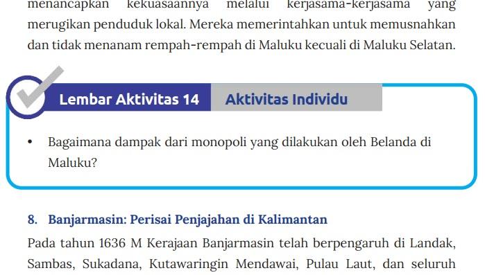 Kali ini kita akan membahas soal bab Tema ke 03 yang berjudul Potensi Ekonomi Lingkungan pada, kegiatan siswa Lembar Aktivitas 14 tentang dampak dari monopoli oleh Belanda di Maluku.