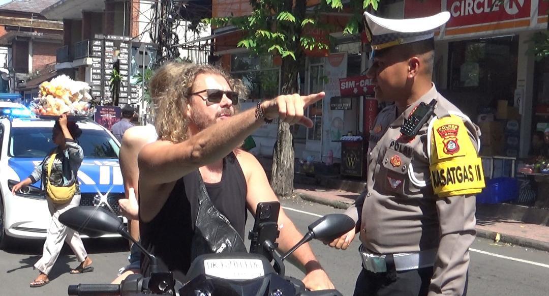 "Kami tadi menjumpai dua orang WNA tidak menggunakan helm, kami langsung berikan tindakan tegas berupa penilangan," ucapnya.