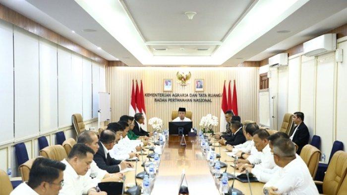 TRIBUN-BALI.COM - Menteri Agraria dan Tata Ruang/Kepala Badan Pertanahan Nasional (ATR/BPN), Nusron Wahid didampingi Wakil Menteri ATR/Wakil Kepala BPN, Ossy Dermawan memberikan pengarahan secara langsung kepada 15 Kepala Kantor Wilayah BPN Provinsi yang baru dilantik.