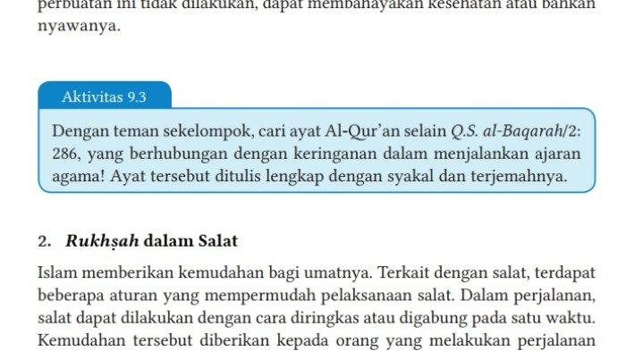 Simak nih, di bawah ini jawaban soal PAI kelas 7 Semester 2 Halaman 201 Kurikulum Merdeka, Aktivitas 9.3 tentang Rukhṣah dalam Agama Islam.