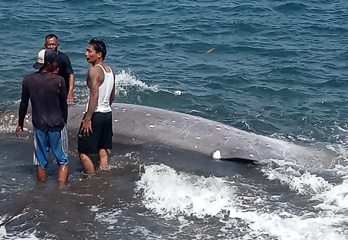 Melihat mamalia laut itu mendekat ke tepi pantai dalam kondisi lemah, kata dia, warga yang diketahui bernama Poniran (55) segera meminta bantuan warga dan nelayan lain di sekitarnya.
