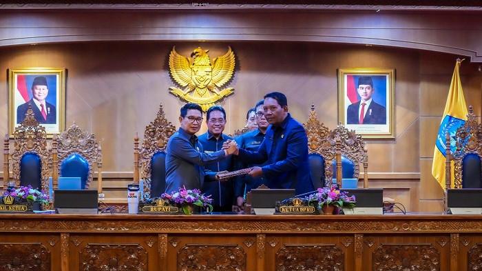 Raperda tentang Anggaran Pendapatan dan Belanja Daerah (APBD) Tahun Anggaran 2026 dan Raperda tentang Pemberian Insentif dan/atau Kemudahan Penanaman Modal dalam Rapat Paripurna DPRD Badung yang berlangsung di Ruang Utama Gosana, Kantor DPRD Badung, Rabu (29/10).