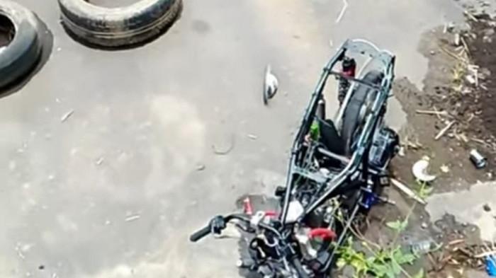 Nasib nahas dialami Komang Gede BAW saat uji kecepatan kendaraan sepeda motor di sirkuit drag race di Desa Landih, Kabupaten Bangli.