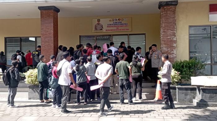Ratusan pegawai non ASN lingkungan Pemkab Jembrana nampak berdatangan ke Mapolres Jembrana, Jumat (12/9) pagi.