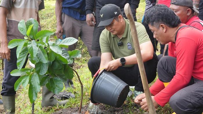 Menurut data yang berhasil diperoleh, jumlah pohon yang ditanam yakni sebanyak 5.075 batang yang terdiri dari pohon durian, manggis, pala, alpukat, sukun, majegau, mahoni, dan mangrove.