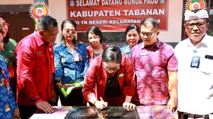 Ny Rai Wahyuni Sanjaya Resmikan Gedung TK Negeri Marga Sekaligus Serahkan PMT dan APE Bagi Anak PAUD