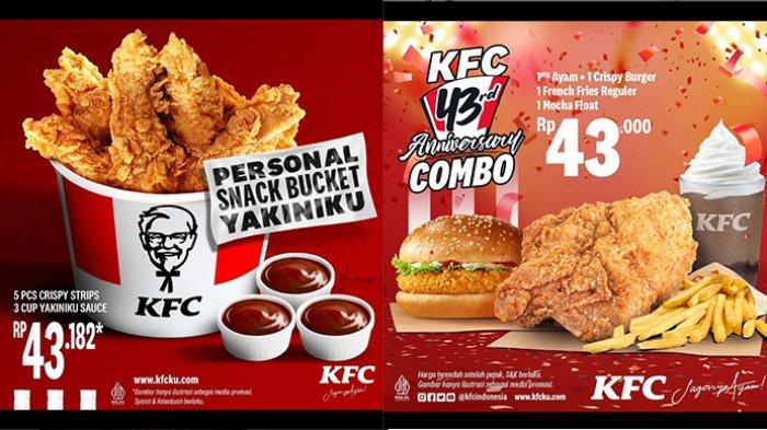 Promo KFC 30 Oktober 2022, Promo Anniversary Combo, Ayam Burger Kentang dan Mocha Float Rp43 RibuPromo KFC 30 Oktober 2022, nikmati promo Anniversary Combo, ayam, burger, kentang dan mocha float hanya Rp43 ribu.Minggu, 30 Oktober 2022