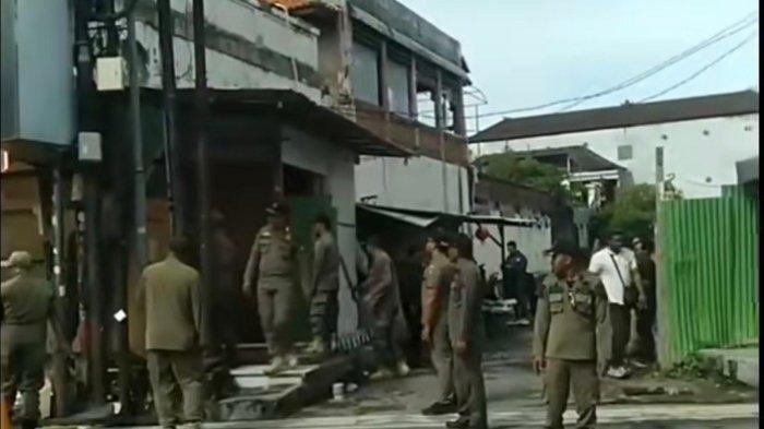 Satuan Polisi Pamong Praja (Satpol PP) Badung melakukan pembersihan lahan eks Sari Club yang berada di depan Ground Zero, Kuta